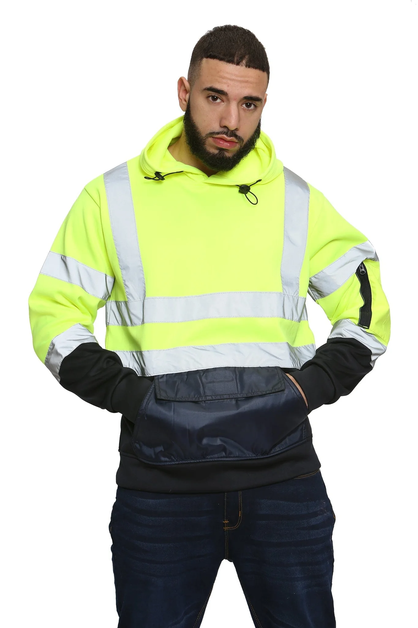 - Adjustable drawstring around the hood for a comfy fit.